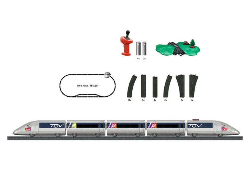 Se incluyen el Power Control Stick inalámbrico de Marklin y 4 pilas AA y 2 pilas AAA.