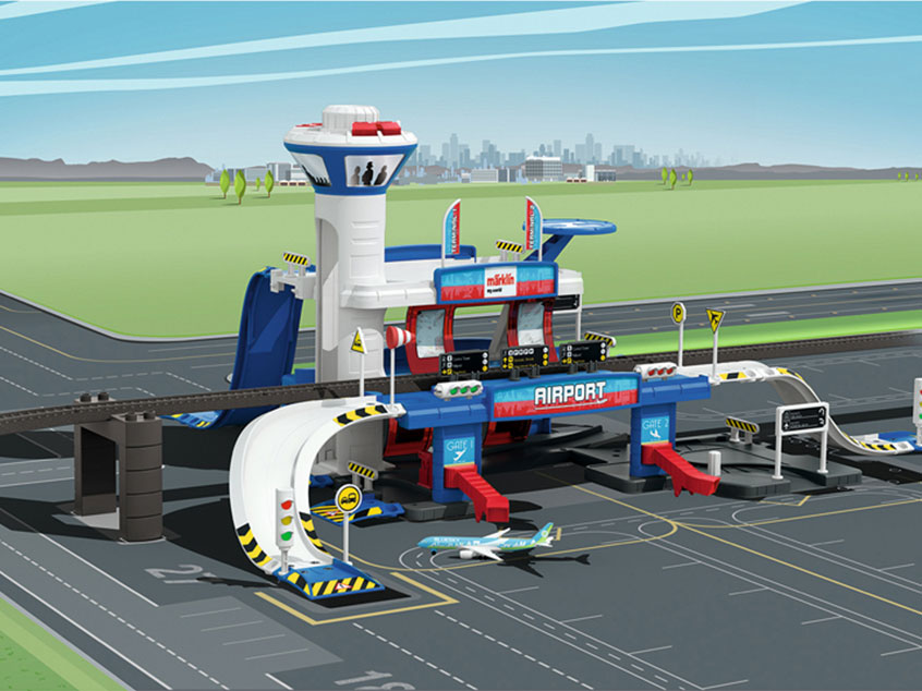 El aeropuerto es el complemento ideal para el set de inicio Marklin My World 29307 - "Airport Express - Tren elevado".